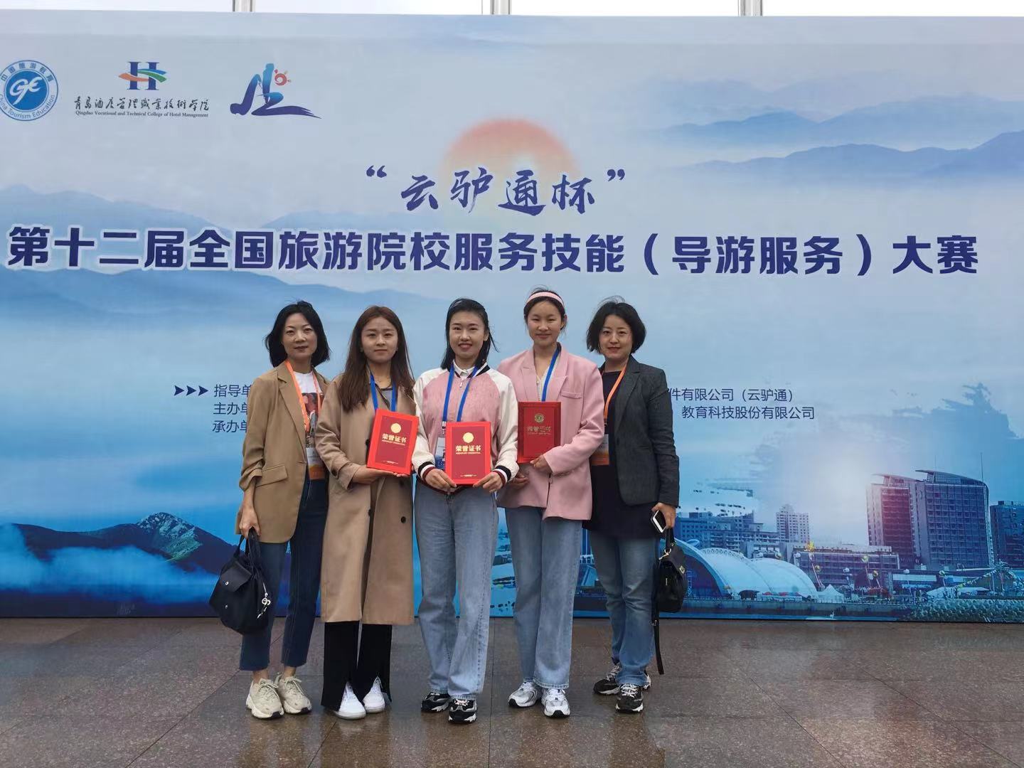 “云驴通杯”第十二届全国旅游院校服务技能(导游服务)大赛是由中国旅游协会旅游教育分会、全国旅游职业教育教学指导委员会联合主办,青岛酒店管理职业技术学校承办的一项国家级赛事。共有来自全国29个省(自治区、直辖市)344所本专科高等学校的1035名选手参加了这次大赛,该赛事已经成为学生展示专业技能,对接行业需求的窗口。为我国旅游界和社会各界提供了交流的平台和典型案例。学院领导多次勉励选手认真准备,调整状态,赛出成绩,赛出风格。张颖霞、贺红茹、薛奕妹、王中雨担任教练分别对对参赛选手进行了全方位的训练和指导。