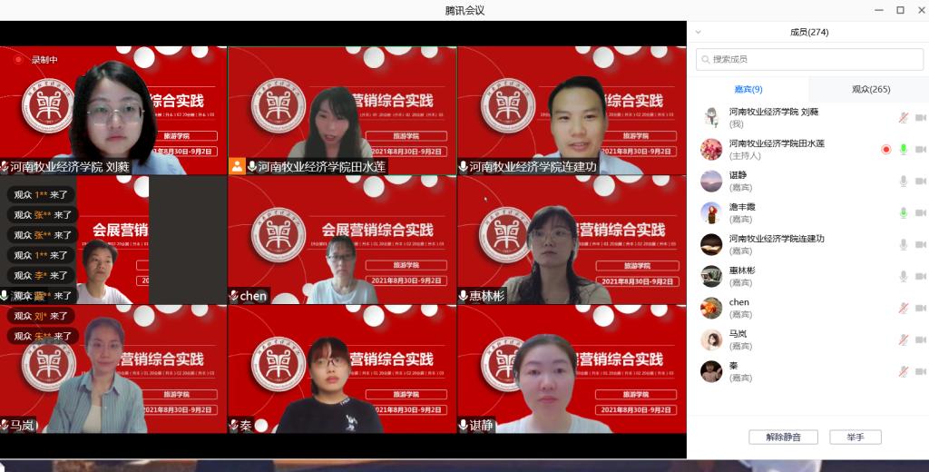 8月30日上午,太阳tyc9728会展经济与管理专业集中实践教学《会展营销综合实践》动员会在腾讯会议线上平台开启,会展经济与管理教研室全体老师,2019级会展、2020级会展升本5个班的全体学生参加了此次动员,活动由课程主讲田水莲老师主持。
