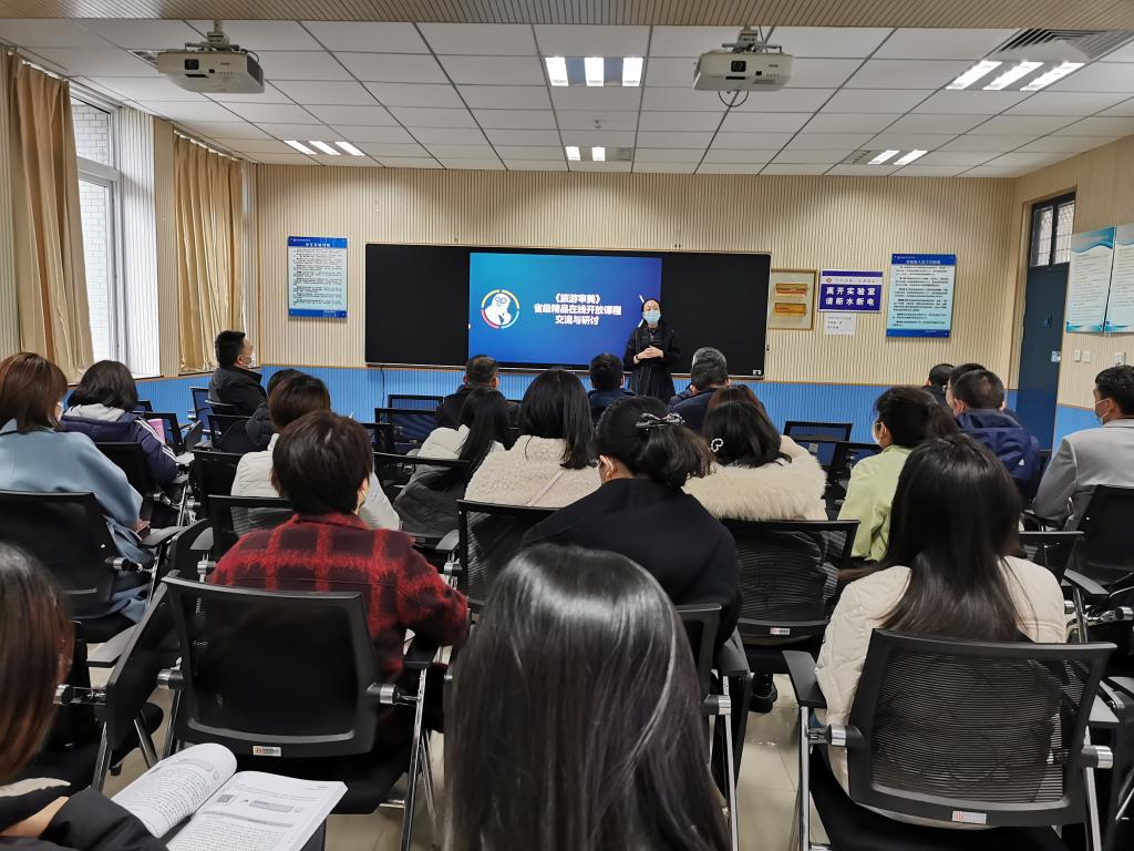 分享会上,省级精品在线课程《景区服务与管理》负责人肖鸿燚老师就精品课申报工作做了主题发言,肖老师对精品课申报书中的课程设计、课程特色、教学团队三项内容做了细致讲解,结合本门课程申报的经验提出四点温馨提示:第一,提前谋划、提前准备;第二,多校联合、展示实力;第三,精心备课、专业制作;第四,重视管理、积极推广。省级精品在线课程《旅游审美》负责人吴莹老师就本门课程的申报作了汇报。吴老师将课程的建设情况作了详细的分析和总结,着重从课程申报的初衷和课程能给学生的收获谈起,深入挖掘课程的知识目标、技能目标和延伸目标。
