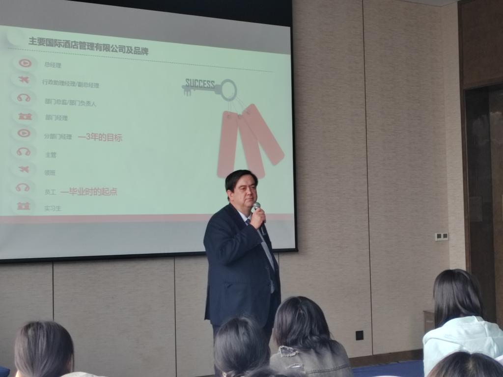 学生分成两组,参观了酒店的第50层名仕会、48层大堂酒廊、美食汇全日餐厅、品珍中餐厅、健身中心等。带领参观的工作人员是我校优秀毕业生,她们亲力亲为、热情细致地讲解介绍。随后,我校优秀毕业生们同我校学生交流互动,用自己的亲身经历和自我见解为学生们答疑解惑,该酒店总经理亲自为学生详细讲解富力万达文华酒店的发展情况、酒店的组织架构以及从事酒店行业所能上升的空间,为学生提供有价值、可参考的信息。