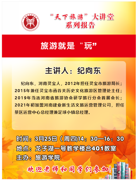 “天下旅游大讲堂”系列报告讲座预告