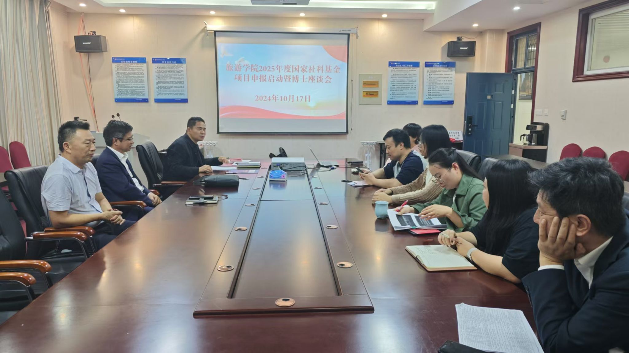 为推动与提高我院2025年度国家基金项目申报的数量与质量,太阳tyc9728于10月17日下午在教学楼C423会议室召开国家基金项目申报动员会。会议由副院长陈道山主持,学院全体领导及博士教师们参加了会议。
