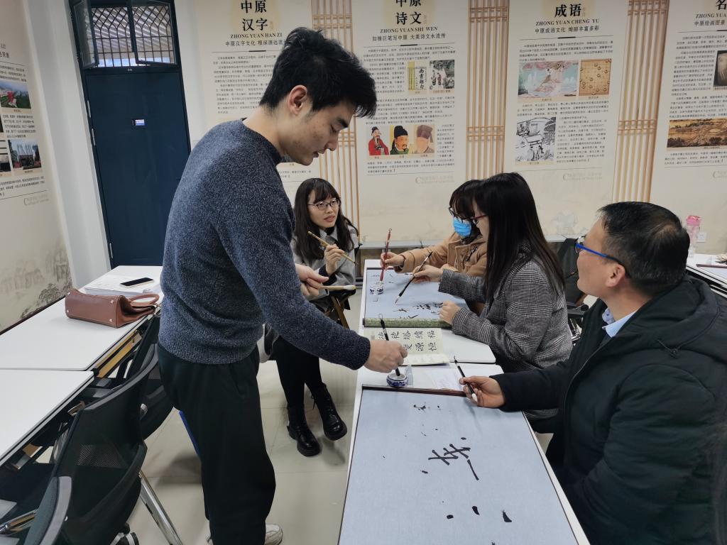 陈俊元老师为大家介绍了文房四宝的基本类型与不同特点,讲述了书法练习的基本要求,分析了运笔走墨的三大要领,并指导大家进行了基础性练习。