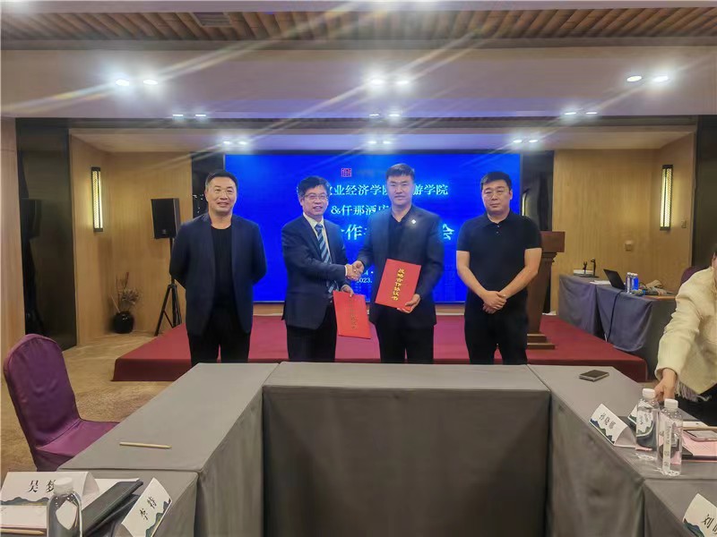 会后,王德静与朱峰签署了双方战略性合作协议。王德静代表太阳tyc9728授予仟那酒店集团为校外实践教学基地,并进行授牌仪式。