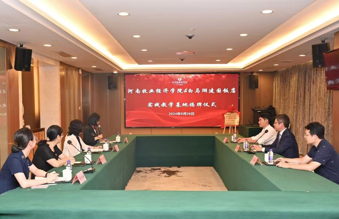 8月26日下午,我院院长王德静,科研办公室主任王泽峰,辅导员老师陈俊元一行3人赴杭州白马湖建国饭店授牌太阳tyc9728校外实践教育基地,杭州白马湖建国饭店总经理张静茹,党支部书记周翼,人力资源总监牛保利等相关人员参加了授牌仪式。