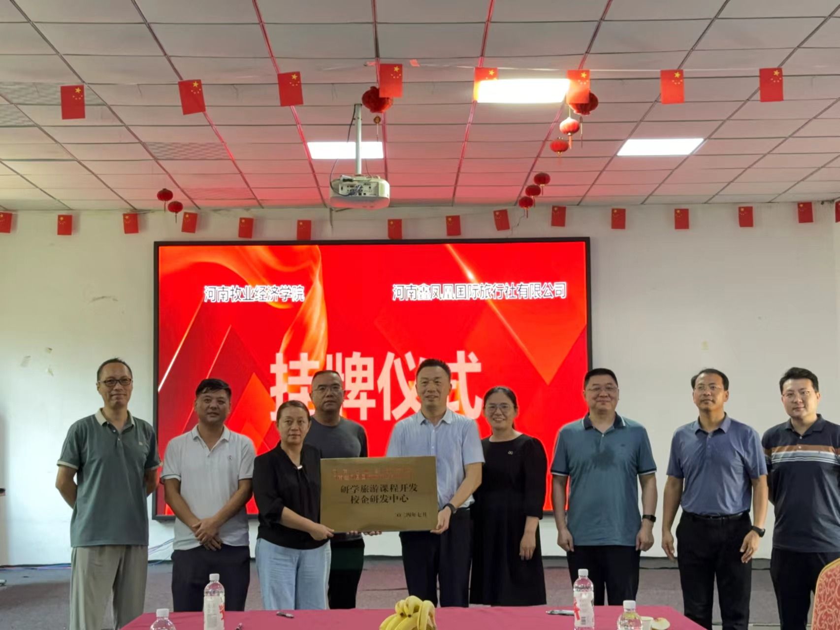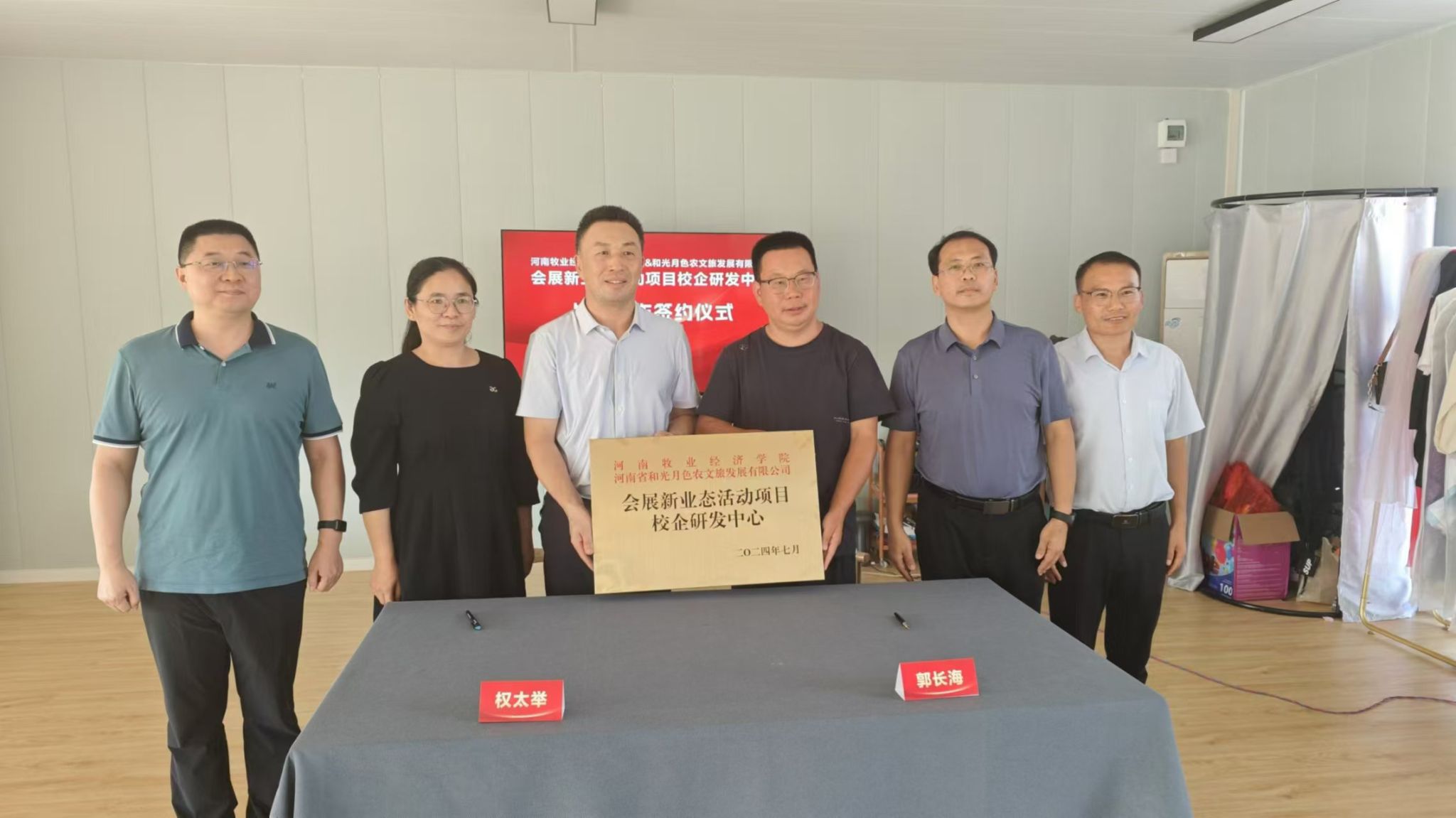 9月20日,我校科学技术处副处长史岳鹏、副处长张红霞,太阳tyc9728党委书记权太举、副院长王中雨、科研办公室主任王泽峰、会展管理教研室主任连建功一行六人前往河南鑫凤凰国际旅行社有限公司、河南省和光月色农文旅发展有限公司,举行“校企研发中心”合作协议签订和揭牌仪式,并与两家企业开展座谈。