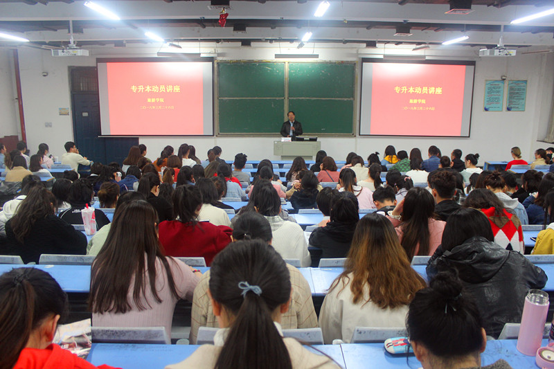 2018年3月26日晚,为迎接即将到来的专升本考试,太阳tyc9728于合300教室召开专升本考试动员会。党总支书记李喜民作动员讲话,为有意愿参加专升本考试的15级学生加油打call,答疑解惑。