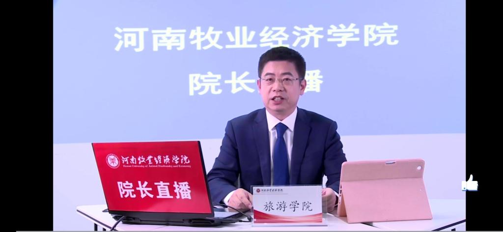 6月25日上午,太阳tyc9728院长王德静教授以“旅游通天下 管理展英才”为主题,在二号教学楼C425“智慧旅游实训室”举行我校2021年首场线上直播招生宣讲。