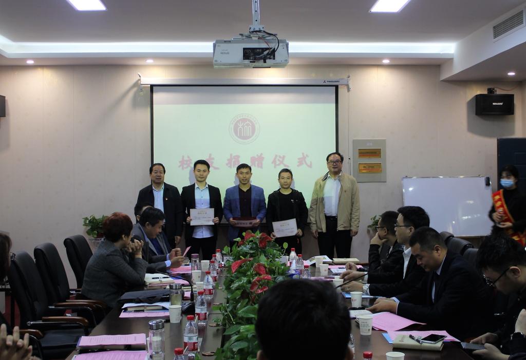 大会最后,举行了简单的捐赠仪式,张伟副校长、李喜民书记为校友颁发捐赠证书,学院也为校友们准备了学校的吉祥物—牧小经。会后,全体参会人员一起来到图书馆门前合影留念,并参观了校史馆、豫酒文化馆。