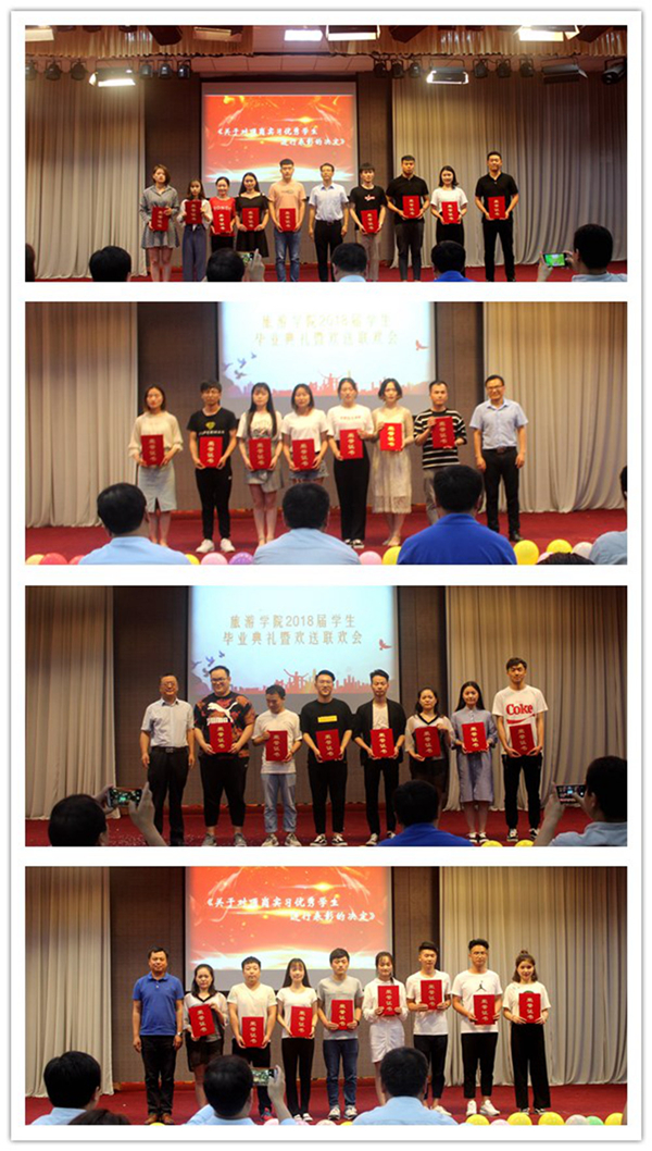 “起来,不愿做奴隶的人们……”,师生们肃然而立,齐唱国歌。饱满激昂的国歌声中,透着他们的坚毅与赤诚。望着这一张张稚嫩而自信的面孔,李喜民书记在致辞时也是十分激动,言语之间无不透露着对即将踏上新征程的993位毕业生无限的关怀与期望。李书记动情地谈到自己的感受:同学们在学校踏实学习,在实习岗位上勤奋工作,在社会里尽力奉献,如此骄人的成绩,“春风十里不如你”,李书记为同学们感到骄傲?三年苦读锻炼,同学们收获了累累知识,收获了珍贵的友谊,如今“真正向理想迈进,向幸福靠拢”,李书记为同学们感到由衷高兴。针对同学们将面临的诸多困难与挑战,李书记向大家提出两点希望,一是希望大家客观认识社会,学会适应社会,坚守梦想,坚守做人道德底线,在竞争压力下保持定力十足;二是希望同学们热情拥抱社会,告诉大家只要拥有饱满的理想和坚实的脚步,一定会收获一筐一筐的金苹果……作为师者、长者,李书记寄语同学们,不论未来身处何方,都要学会加强自身建设,慢些脚步,等等灵魂,从容的面对人生的波澜,谆谆教导与祝福在毕业生之间暖暖的传递着。带着这份祝愿与期望,杨盼盼同学代表全体2018届毕业生向三年来辛勤培育我们的老师们表达最真挚的敬意与感激之情,“一日之师,终身为父”,这里是永远的家,定当不辜负老师们的期望,情感真挚,发于肺腑。而后副院长马海燕宣读优秀毕业生、优秀学生干部、优秀先进个人获得者,院长徐新林教授,教研室主任张少飞、王中雨、陈道山、连建功等老师先后为其颁奖。