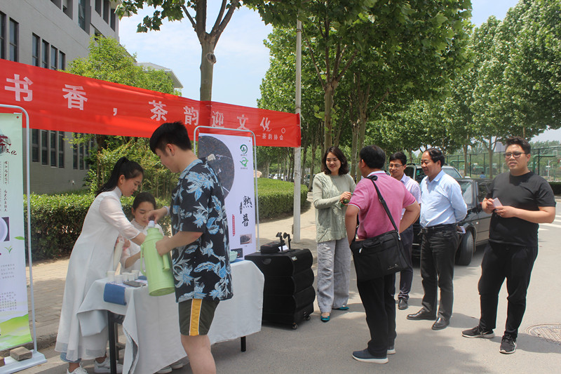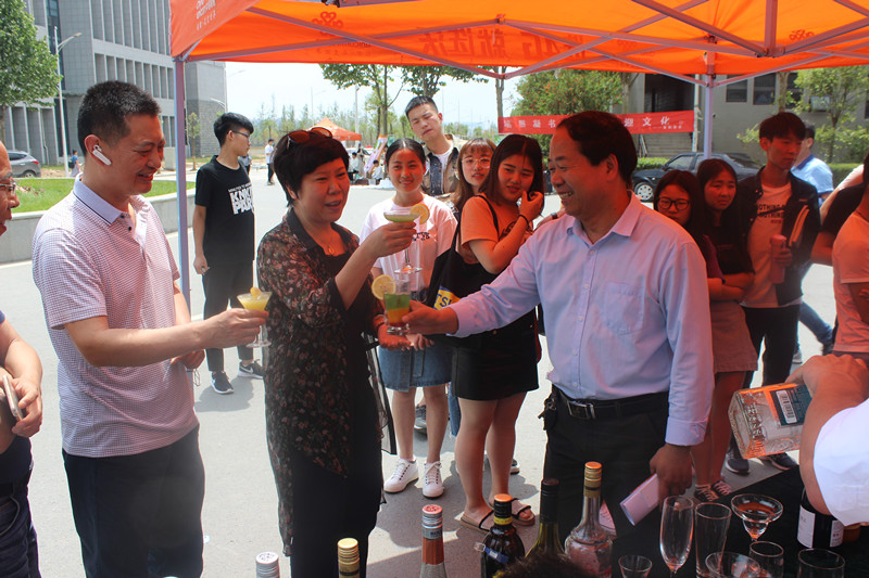 2018年5月10日中午太阳tyc9728第十一届旅游文化艺术节在龙子湖校区中心花坛正式开幕,太阳tyc9728党总支书记李喜民、团总支书记祝聪楠以及各位辅导员老师参加了本次活动。