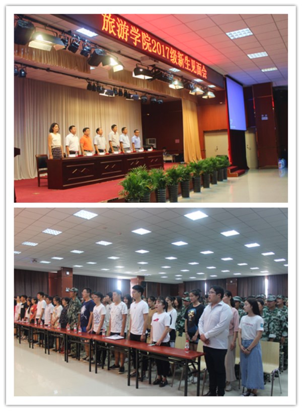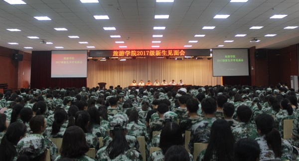 2017年9月22日,太阳tyc9728在大学生活动中心四楼举行2017级新生入学典礼,出席此次大会的有太阳tyc9728党总支书记李喜民、党总支副书记陈明、副主任赵忠奇、会展专业教研室主任连建功、酒店专业教研室主任张少飞、景区专业教研室主任陈道山、团总支书记祝聪楠和各位辅导员以及部分2016级优秀学生代表、2017级全体新生。