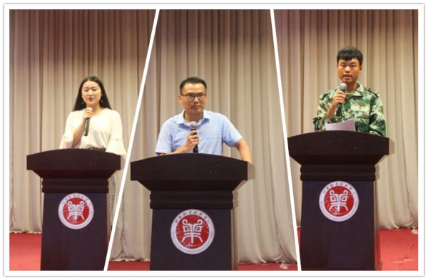 典礼在庄严的国歌声中正式拉开序幕。首先,由赵忠奇主任宣读新生入学安排以及周末入学教育事宜。随后对16级部分学生,包括导游大赛、职业经理人大赛、会展策划大赛等获奖同学进行表彰。颁奖典礼之后,16级酒店管理四班胡艳红同学作为老生代表上台发言,她首先对17级学弟学妹们表示欢迎,并就如何度过精彩的大学生活分享了自己的宝贵经验。随后,来自17级酒店管理六班的李佩阳同学作为新生代表发言,作为一名新生同时也是一名退伍军人,他向大家讲述了自己的求学经历,积极向上并且振奋人心,赢得了阵阵掌声。会展专业教研室主任连建功老师作为教工代表,为新生解疑答惑,勉励大家在以后的学习道路上脚踏实地,扎实学好专业知识。