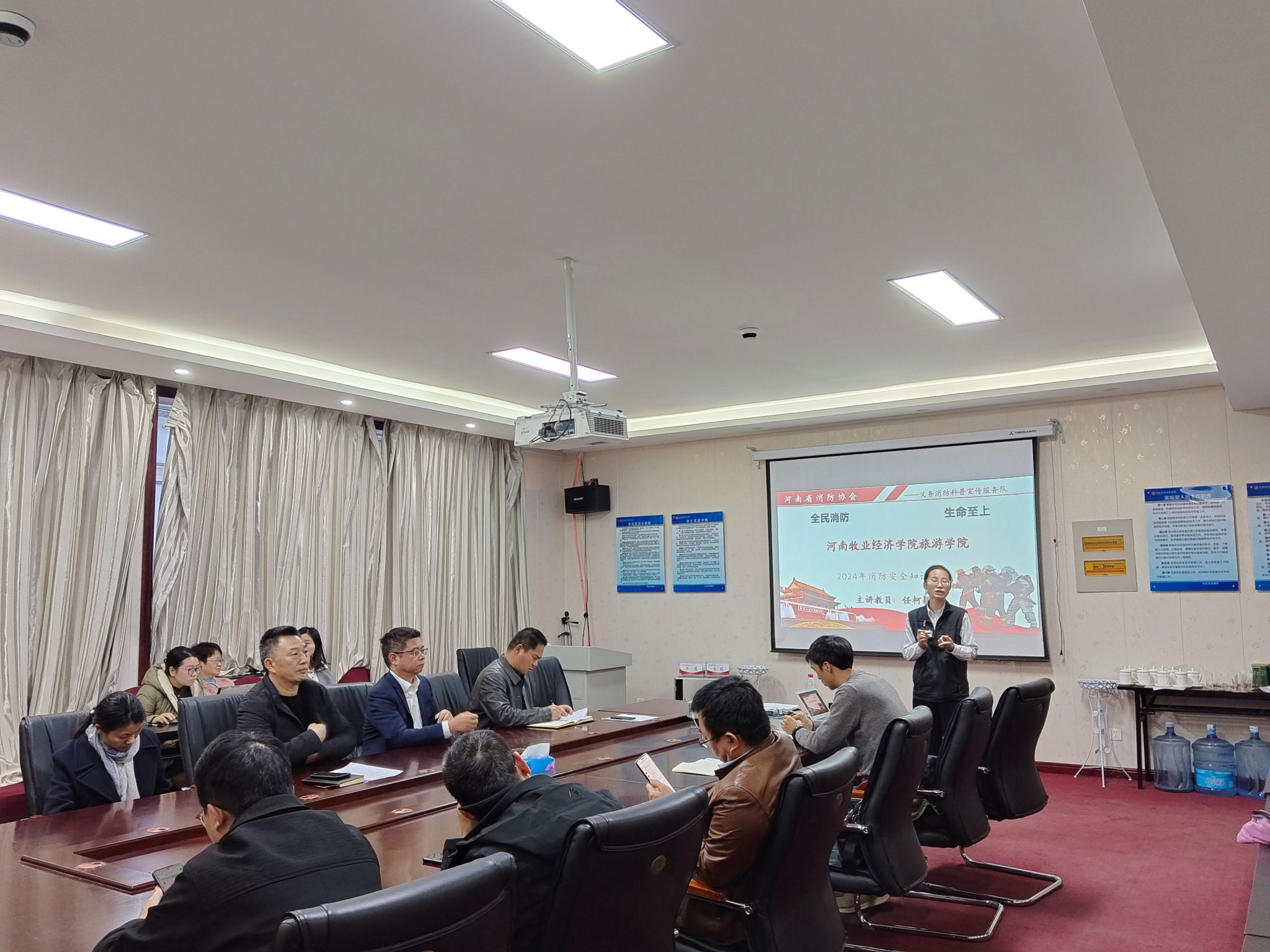 为深入学习贯彻习近平总书记关于安全生产系列重要论述精神和学校要求,进一步加强火灾防控宣传教育工作,不断提升我院教职员工的消防安全意识和火灾防控能力,2024年11月29日下午,太阳tyc9728特邀河南省消防协会义务消防科普宣传服务队任柯颖教员在二号楼C423会议室为我院带来消防安全培训讲座。本次消防培训会由院党委书记权太举主持,全院教师参加。