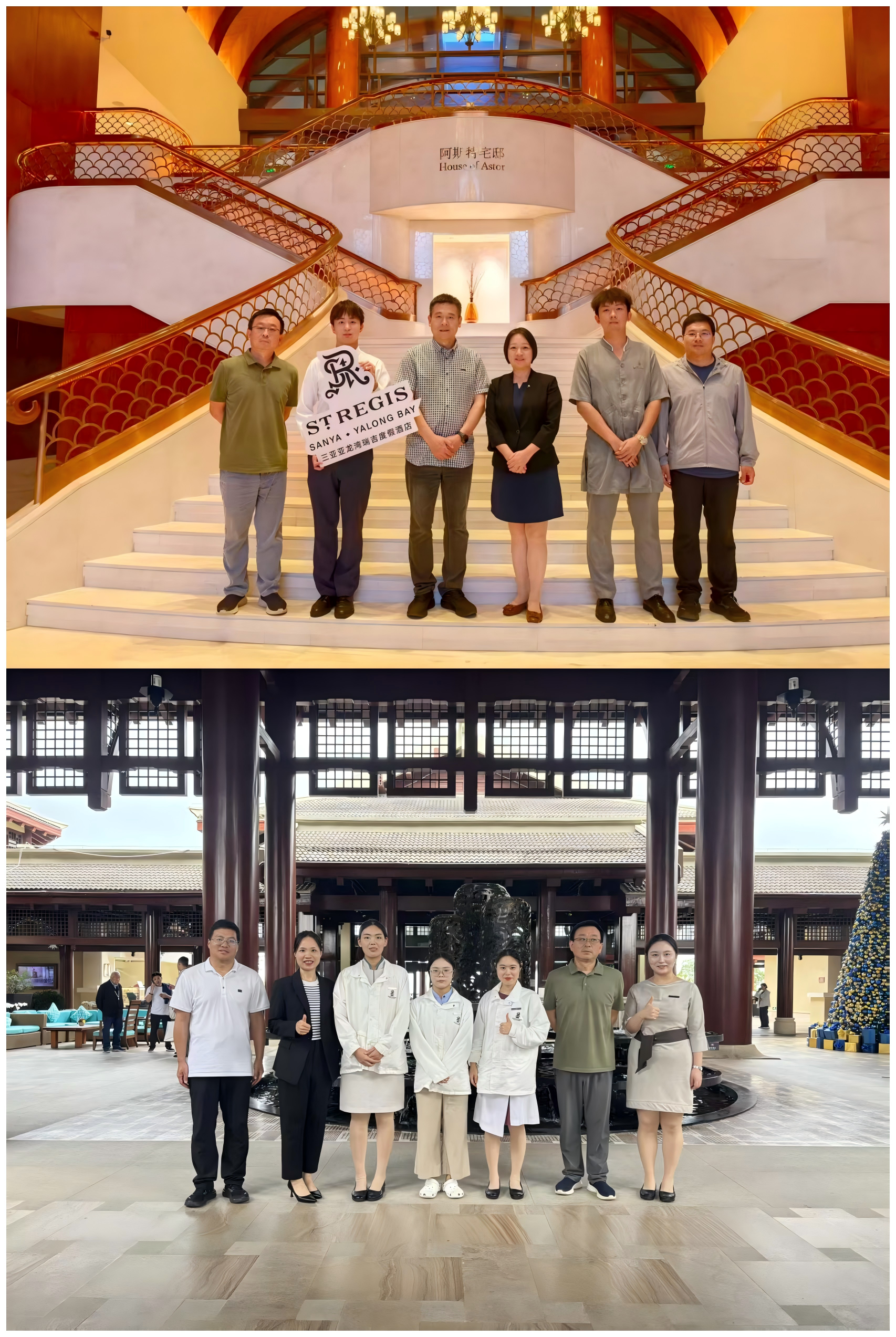 张胜波一行先后走访了亚特兰蒂斯酒店、亚龙湾瑞吉度假酒店、丽思卡尔顿酒店、太阳湾柏悦酒店及艾迪逊酒店等国际品牌标杆项目,探望慰问实习学生,并与用人单位座谈。座谈中,张胜波向企业详细介绍了我院专业优势、师资队伍和人才培养的特色,并表示校企合作交流是促进双方优势互补、资源共享的有力举措,希望在现有基础上,拓宽合作领域,创新合作模式,共同培养适应行业企业需求的高素质人才。企业表示,愿意为学院学生提供更多实习和就业机会,并在人才培养方案制定、实践教学等方面深度参与,实现校企双赢。