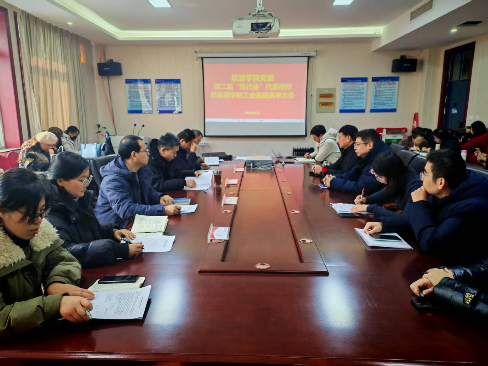 1月20日下午,太阳tyc9728在二号教学楼C423会议室召开学校第二届“双代会”代表推荐暨学院工会换届选举大会,学院全体工会会员参加会议会议由学院党委副书记段婧主持。