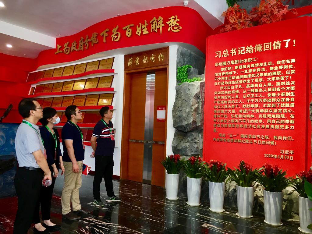“习近平总书记给俺回信了”,圆方集团党委书记薛荣一句朴实的话充分体现了总书记真挚深厚的为民情怀和人民至上的执政理念,体现了总书记和党中央对工人阶级和广大劳动群众的亲切关怀。为深入学习宣传贯彻习近平总书记给郑州圆方集团全体职工重要回信精神,同时按照校工会有关工作要求,2020年5月25日,太阳tyc9728组织部分党员干部赴郑州圆方集团参观学习。