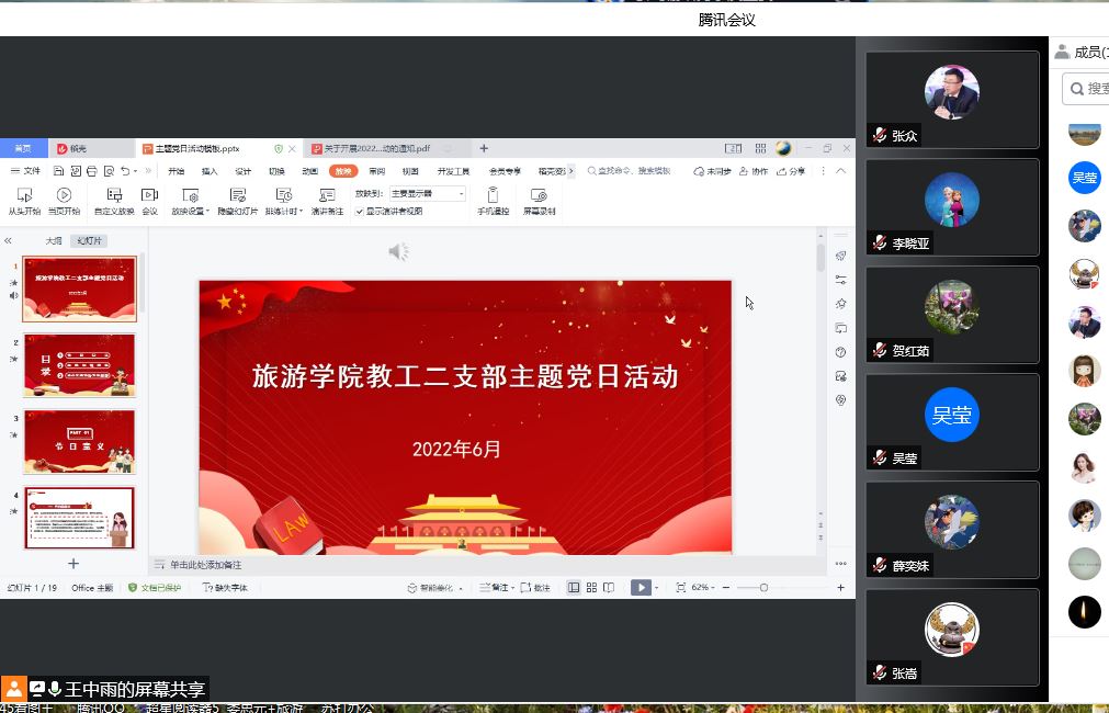 6月16日中午,太阳tyc9728教工二支部在腾讯会议平台,开展线上主题党日活动。会议由支部书记王中雨主持,支部全体党员参加。