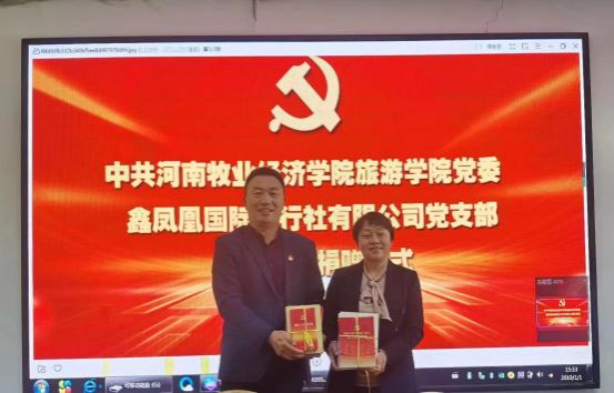 学院党委向鑫凤凰国际旅行社党支部捐赠了党建图书,双方一起重温入党誓词,双方共同学习习近平新时代中国特色社会主义思想,一同参观了郑州国防军事设施梅山防空洞爱国主义教育博物馆。