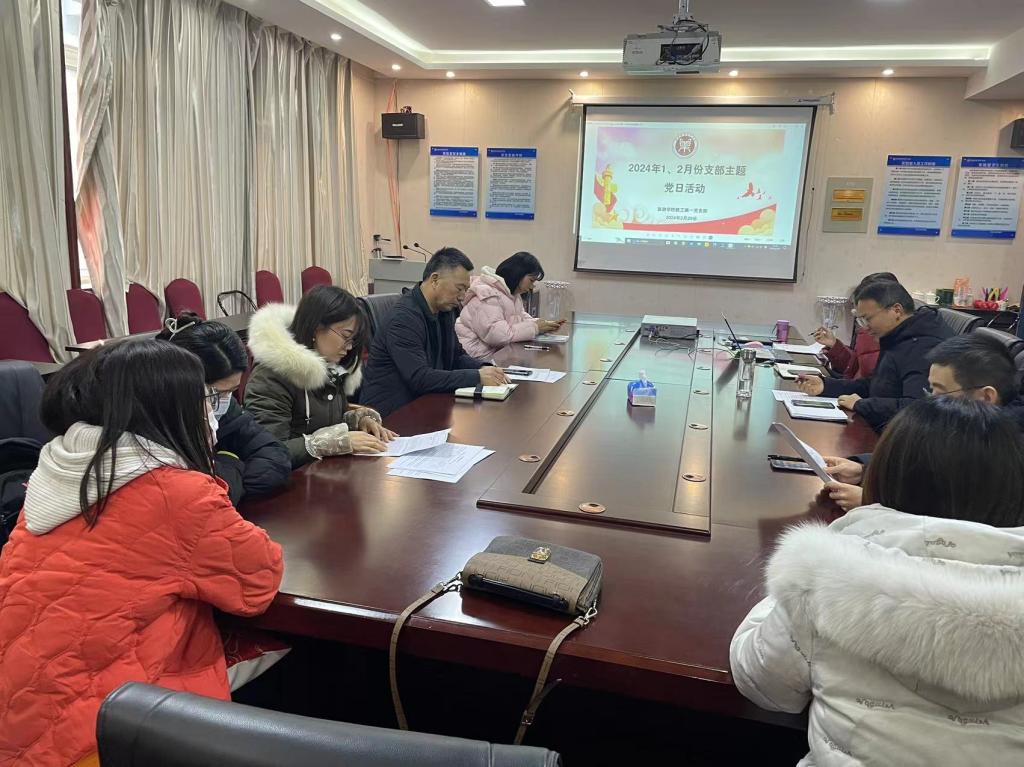 2月29日下午,太阳tyc9728教工第一党支部在C423会议室开展1、2月份主题党日活动,学院党委书记权太举和支部全体党员同志参加,会议由支部宣传委员连建功主持。