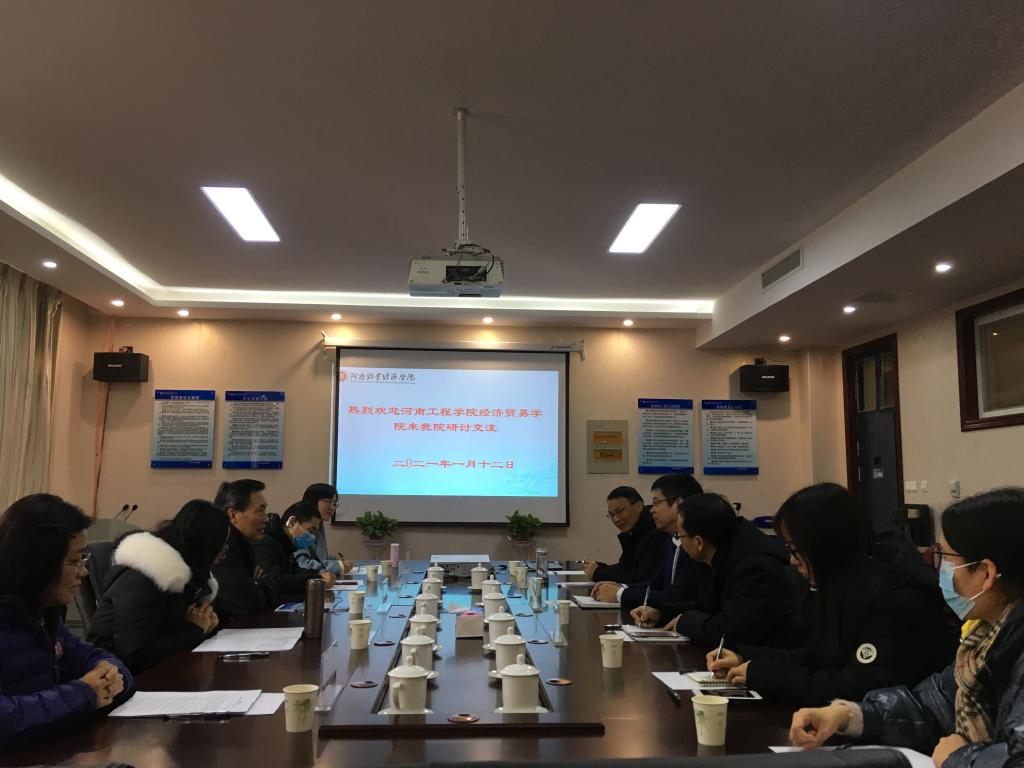 2021年1月12日,河南工程学院经济贸易学院郭宝林院长、党政办主任王继东等一行5人到我院就会展经济与管理专业建设、实践教学等方面进行考察交流。我院院长王德静、副院长王中雨、会展教研室主任连建功及部分教师代表参加了此次交流活动,活动由副院长王中雨主持。