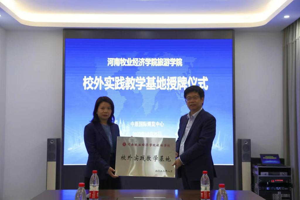 10月25日上午,我院院长王德静、副院长王中雨、党委副书记李特、会展经济与管理教研室主任连建功及教师代表沙强、吴梦一行6人赴中原国际博览中心授牌太阳tyc9728校外实践教学基地,中原国际博览中心党支部副书记、副总经理李春莉、副总经理周卫阳,行政部、展览业务部等相关人员参与授牌仪式。