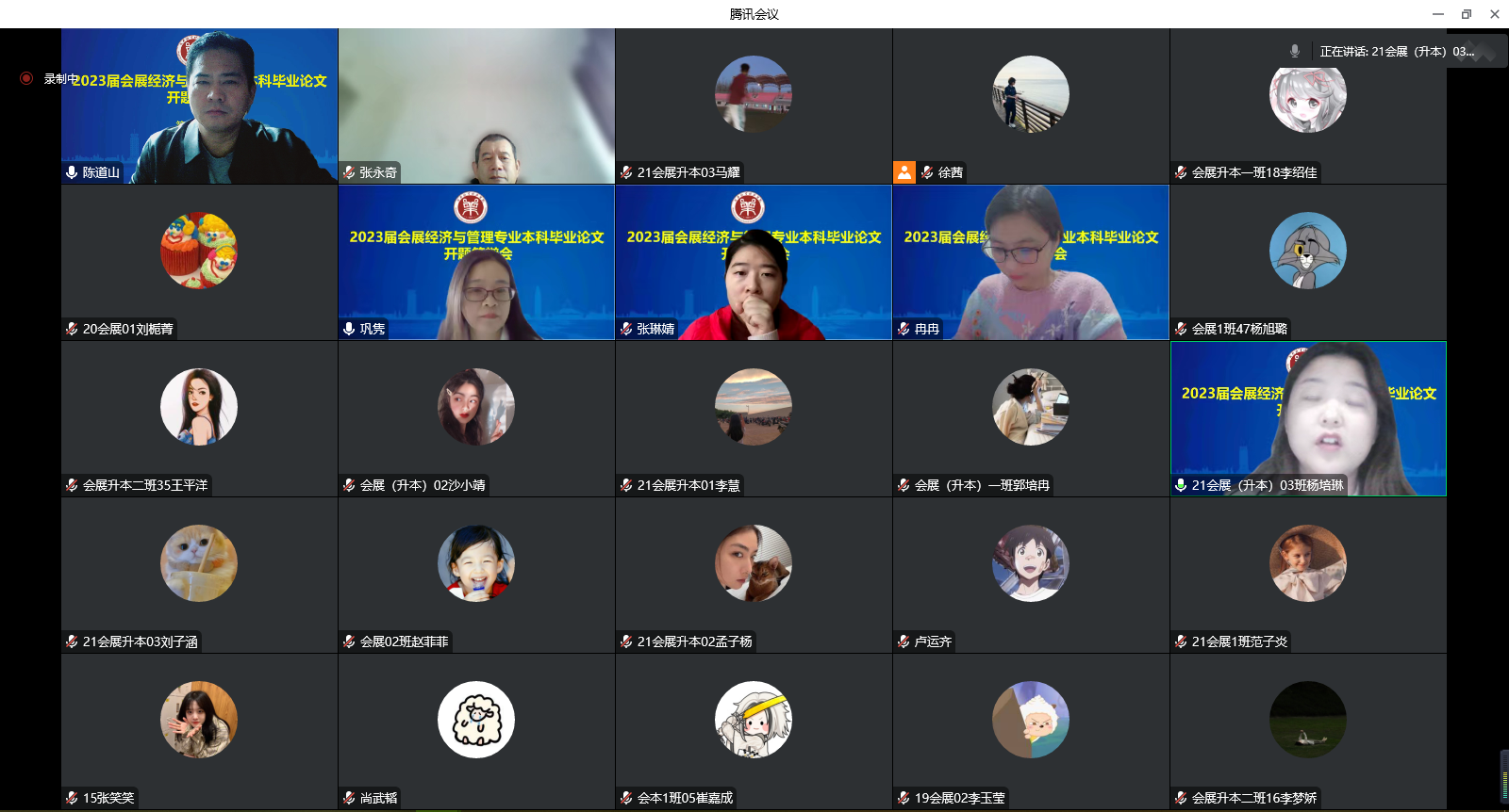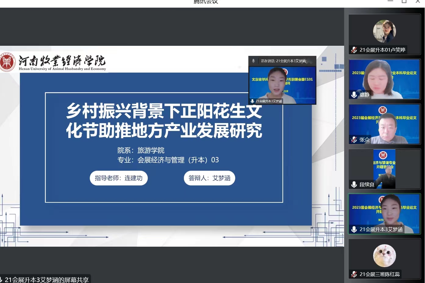 根据《9728太阳集团本科毕业论文(设计)工作条例》和《太阳tyc97282023届本科毕业论文(设计)工作实施方案》,2022年11月12日,我院2023届会展经济与管理本科专业毕业论文开题答辩工作通过腾讯会议线上顺利进行,本次答辩共分8个答辩组,287名学生、48名指导教师参与答辩会。
