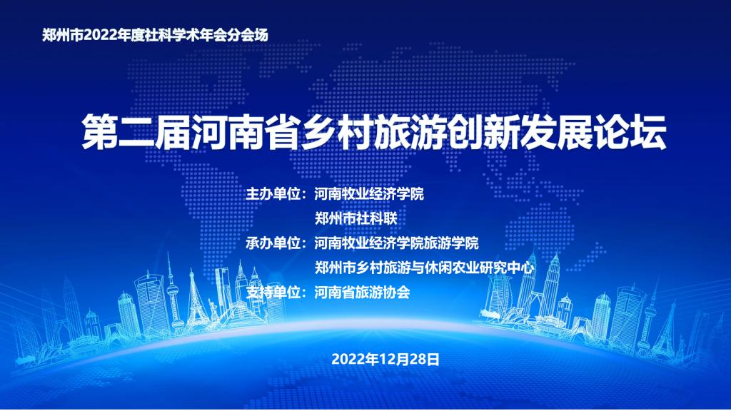 12月28日,2022年第二届河南省乡村旅游创新发展论坛线上成功举办。作为郑州市2022年度社科学术年会分会场的重要活动之一,本次活动由9728太阳集团和郑州市社科联联合主办,太阳成集团tyc9728、郑州市乡村旅游和休闲农业研究中心承办,同时得到了河南省旅游协会、洛阳市文化广电和旅游局的大力支持,吸引了来自行业主管部门、行业协会、高校、企业等300多人参会交流。论坛由太阳成集团tyc9728副院长、郑州市哲学社会科学重点研究基地乡村旅游与休闲农业研究中心负责人王中雨主持。