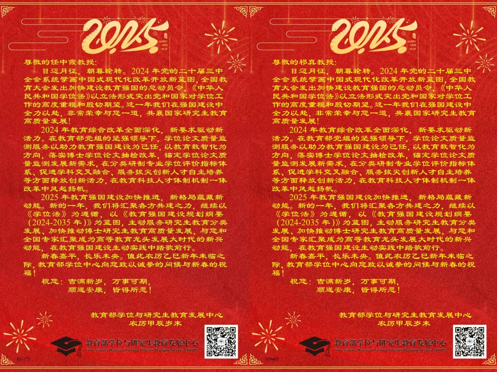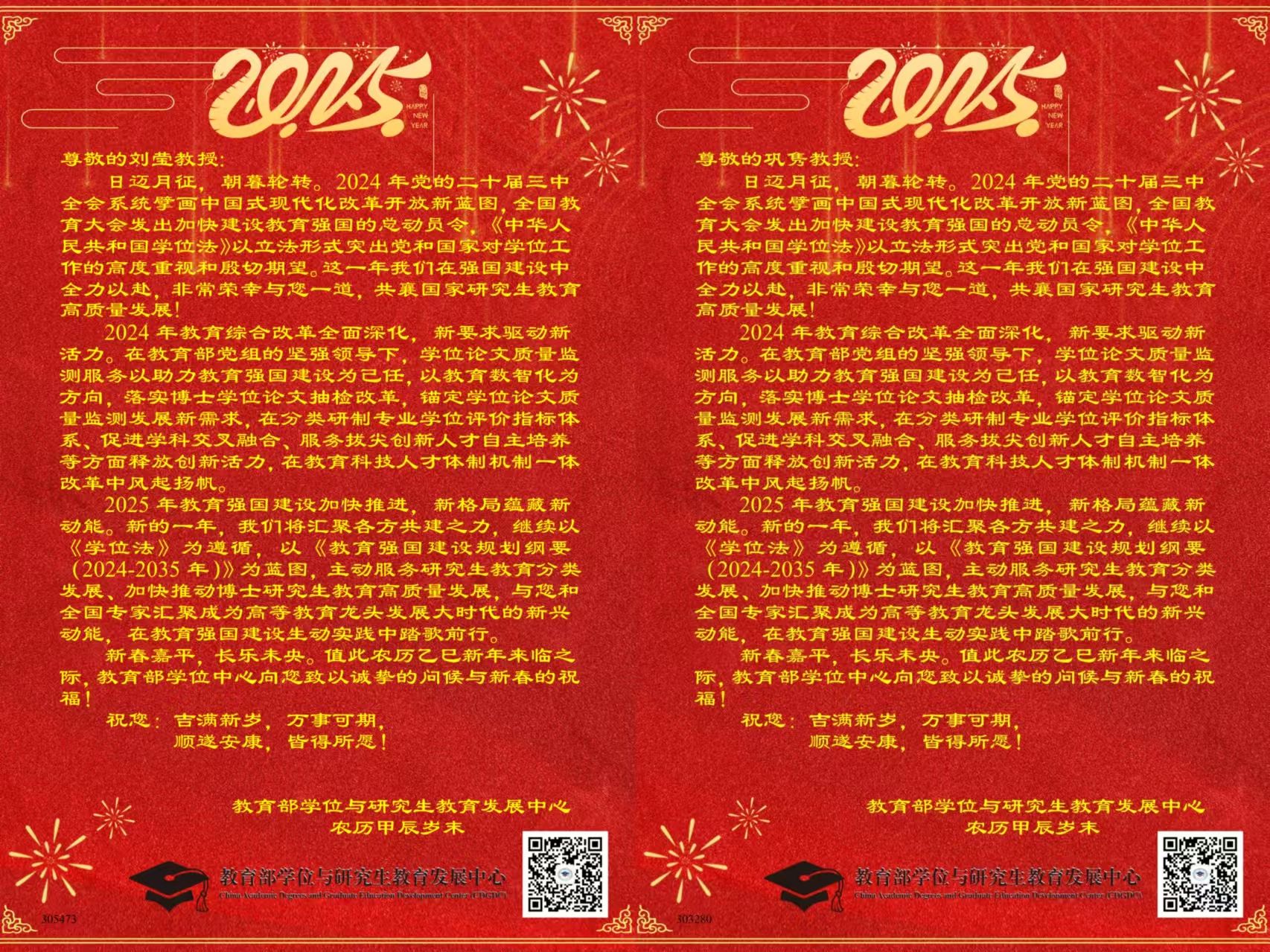 近日,太阳tyc9728多名教师荣幸收到教育部学位和研究生教育发展中心发来的新年贺信,对一年来在毕业论文指导及抽检盲审方面的工作给予充分肯定和高度认可。