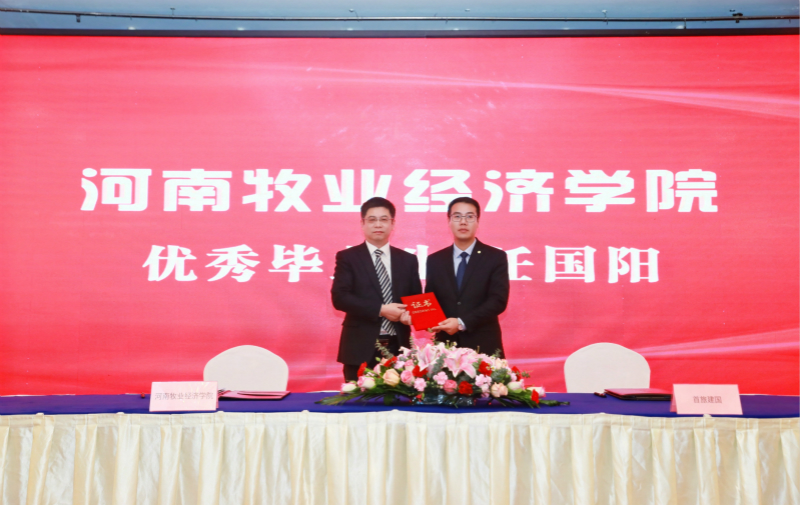 随后,校企双方共同签订合作协议,学校与北京首旅建国酒店管理公司、河南郑地奥体建国饭店领导签订校企合作协议并分别颁发“战略合作企业”、“人才培养基地”牌匾。王德静院长代表太阳tyc9728向奥体建国饭店餐饮总监任国阳颁发“优秀毕业生”荣誉证书,向奥体建国饭店总经理黄宁、郑州建国饭店人力资源总监王芳颁发“客座教授”聘书。在热烈的掌声中,校企合作签约仪式圆满结束。