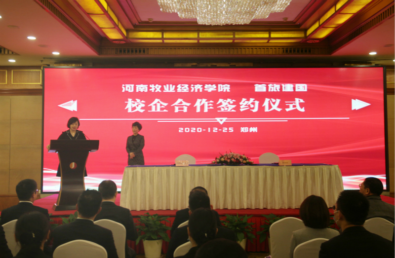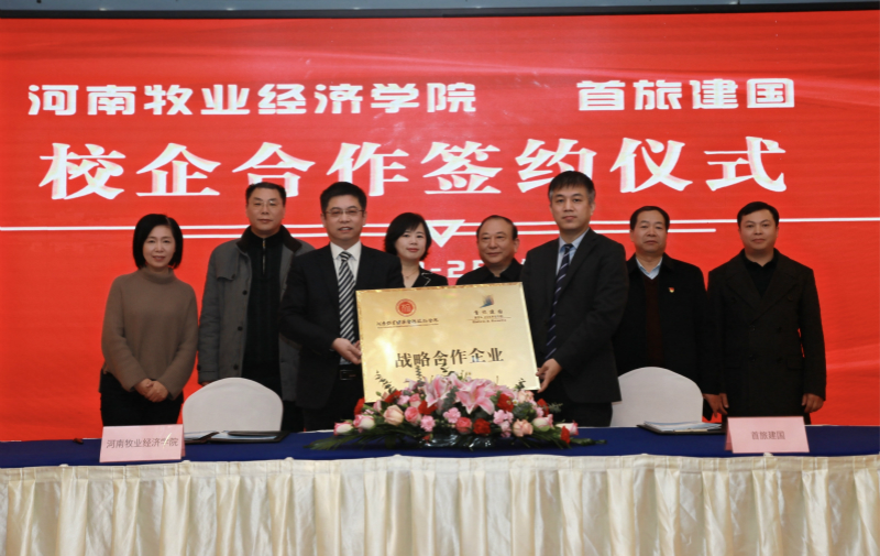 为进一步促进产教融合,拓宽科学研究、成果转化及人才培养渠道,12月25日上午,我校与北京首旅建国酒店管理公司在郑州建国饭店隆重举行了校企合作签约仪式。副校长张卫宪、社会服务办公室主任胡迎利,北京首旅建国酒店管理公司副总经理于阗、人力资源总经理袁玮,郑州建国饭店总经理潘振家、人力资源总监王芳,太阳tyc9728党委书记李喜民、院长王德静、酒店管理教研室主任张少飞出席了签约仪式,河南区建国品牌各成员酒店总经理及管理团队参加,仪式由河南郑地奥体建国饭店总经理黄宁主持。