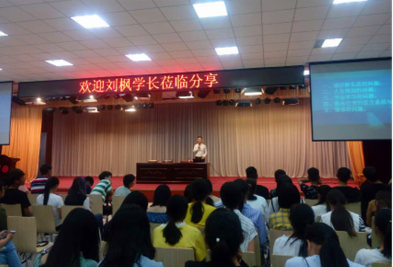 9月25日下午,邀请到我校15届会展专业优秀毕业生刘枫和同学们分享交流,刘枫现就职于郑州锦之元文化传播公司,任会议运营总监兼主持人。刘枫结合自己之前在学校的学习经历、实习经历和两年多的工作经历,分享了他的感悟,他希望学弟学妹们在校期间,学习好专业理论课程的同时,尽可能的多参加活动,多组织活动,增加自己的阅历、提升自己的实践技能。走入行业后,要有明确的目标,依然本着学习的心态武装和提升自己,脚踏实地向着自己的目标迈进。刘枫的分享让学生们知道了如何度过在学校的四年,又将如何走向社会实现自己的梦想。