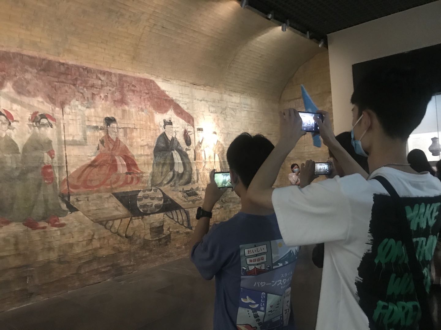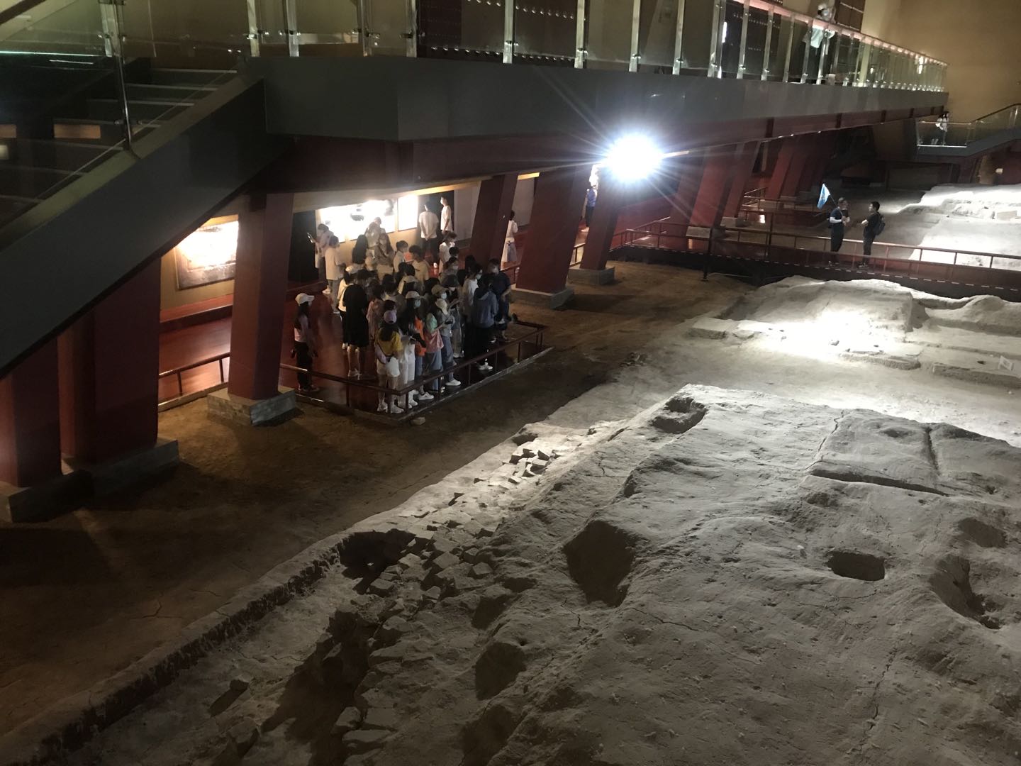 《旅游审美》课程实训的第一站就抵达了定鼎门遗址博物馆,作为隋唐洛阳城外郭城的正南门,这座城门从隋代一直沿用到了北宋末年,历时530年。2014年隋唐洛阳城定鼎门遗址作为“丝绸之路:长安-天山廊道的路网”中的一处遗址点被列入世界遗产名录。定鼎门的“一字阙”城门形制在国内其他地方还没有发现,同学们在看到原址上复原出的巍峨壮观的城门,遗址中出土的文物和遗迹中清晰可见的骆驼足迹时,都在感慨当时建筑的恢宏大气和丝绸之路的繁荣。