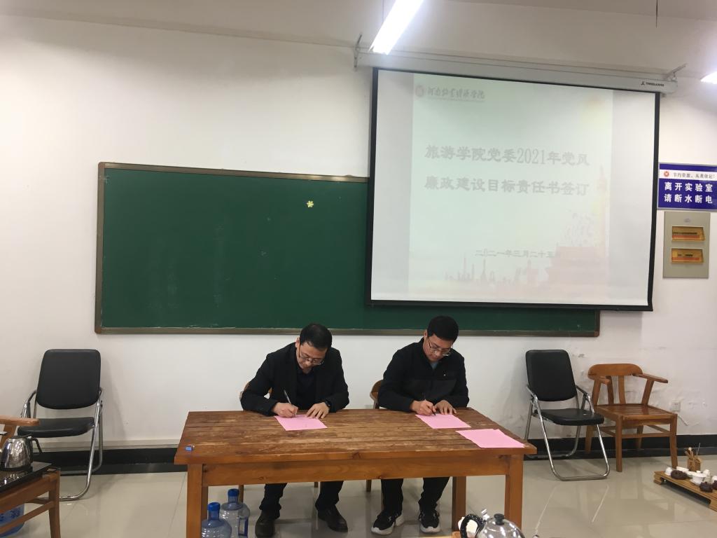 会上,党委书记李喜民说明了签订党风廉政建设责任书和廉洁自律承诺书的意义,明确了各级领导干部对党风廉政建设工作分级负责的内涵,强调各级领导干部要认真学习学校领导讲话精神,全面了解责任书和承诺书内容,切实担负起职责范围内的党风廉政工作并加强自律,以身作则。随后,李喜民书记、王德静院长与中层副职及党支部书记,中层副职与工作分管的科级干部、教研室主任,分别签订了党风廉政建设责任书。各级干部签署了本人廉洁自律承诺书。