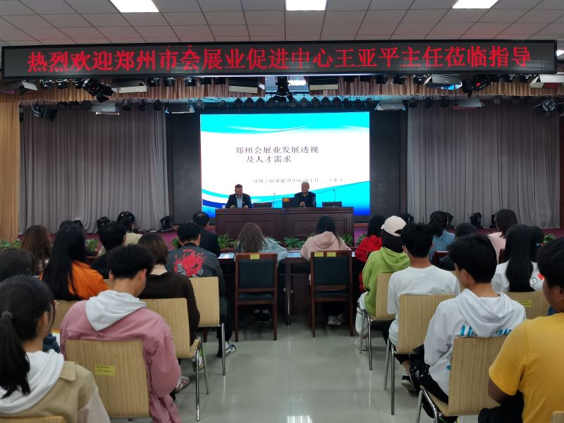 王主任从会展的概念出发,从不同的角度让学生重新审视会展的本质和重要价值。并结合自己从业近20年的经历,谈郑州市会展业的发展历史、发展阶段、发展现状和未来发展趋势。他认为郑州市具有发展会展业得天独厚的条件,特别是随着多重国家战略的叠加效应,郑州会展业潜力巨大,虽然疫情期间下滑严重,但当前基本上已经恢复,未来郑州市会展业必将在专业化、品牌化、市场化、国际化、信息化等方面获得长足发展,建设国际会展名城。关于会展人才问题,王主任认为,郑州市当前缺乏高端策划和项目运营人才,希望同学能够培养自己多方面的能力,养成良好的思维习惯,培养自己资源整合能力,超越自我就是成功。报告结束后,王主任和同学们进行了互动,解答了同学们对郑州市会展业发展的疑问和困惑。